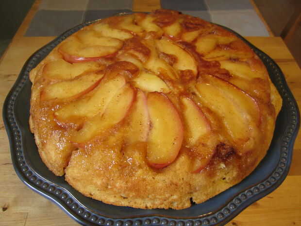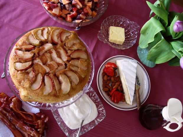 cada brunch necesita un fantástico centro de mesa - algo que se traducirá en un coro de "oohs" y "aahs" de sus compañeros de cena - y tengo solo la cosa. Un magnífico panqueque, lo suficientemente grande como para que todos puedan compartir, rematado con manzanas caramelizadas al horno. Es dorado, y absolutamente delicioso cuando rociados con jarabe de arce - pero por otra parte, ¿qué no es? Cocinar algunos tocino salado y mezclar una ensalada de frutas light para el acompañamiento perfecto a este panqueque de manzana al horno boca abajo.