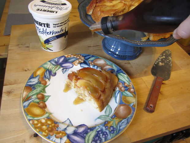 Tah dah! Crepe de un precioso, delicioso, oro marrón revés manzana asada para tomar su lugar como la pieza central de su brunch. Yum. Servir hasta el cálido rebanadas cubierto con jarabe de arce y con yogurt de vainilla. Usted podría también superior la tortita con nata como postre, si te gusta. ¡ Disfrute!