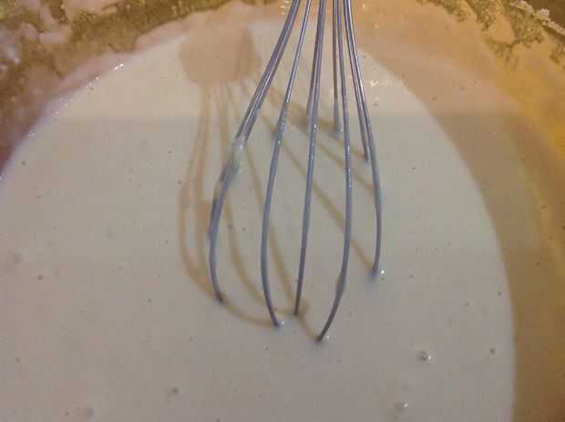 Continuar batiendo y añadir aceite o mantequilla derretida