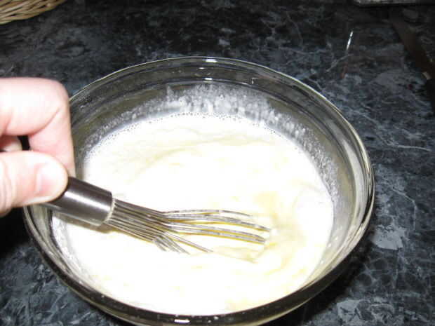 Panqueques alemanes con fresas y plátanos (2 / 8 paso)