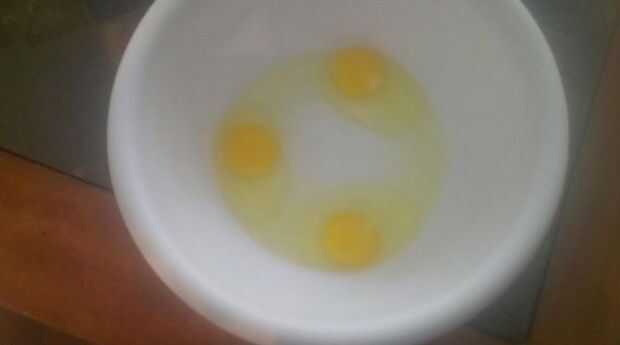 Romper los tres huevos en un tazón.
