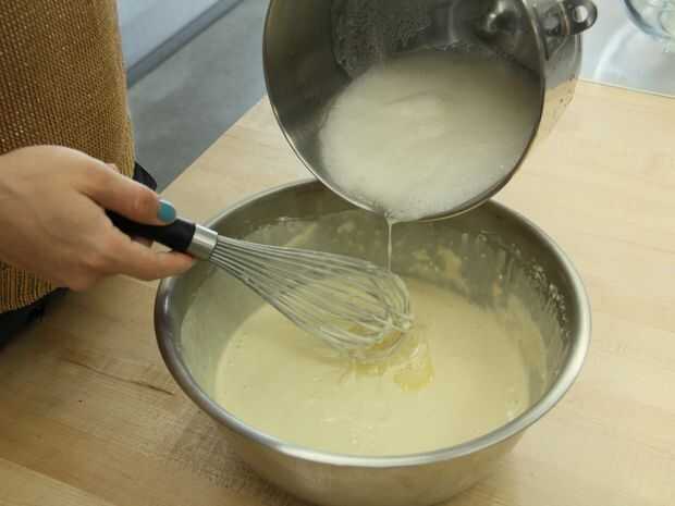 4. incorpore las claras de huevo pasado. Esto debe dejar la mezcla con una pelusa de las claras de huevo.