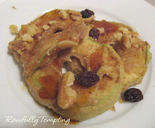 1. mezcla de castañas de cajú y agua hasta que esté cremosa. Añada los ingredientes restantes, excepto las manzanas y la canela.