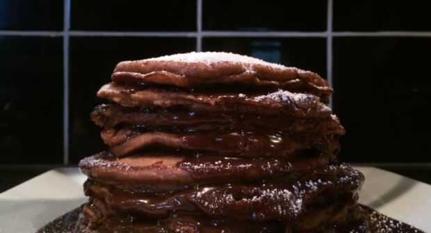 Para la Ganache de Nutella, calentar alguna crema y verter sobre la Nutella. Después laving para sentarse por un minuto o dos, lentamente revuelva hasta combinar. En su momento usted está listo para apilar sus panqueques. Propagación de ganache entre cada capa y terminar con una pizca de glaseado de azúcar y algunos crema batida.