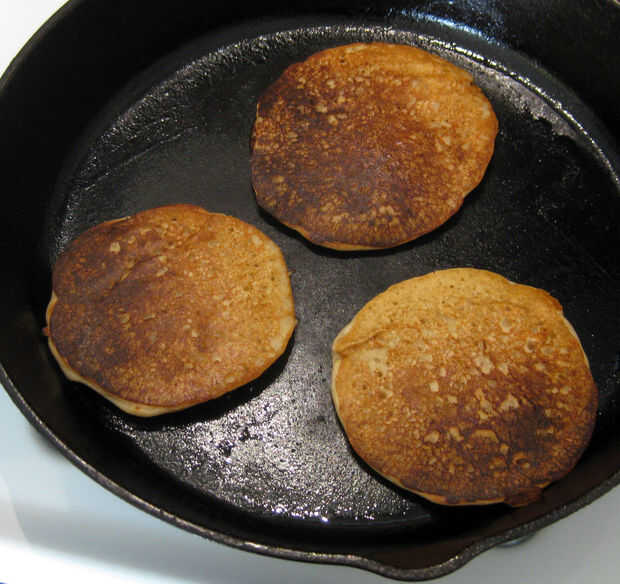 Voltear los panqueques cuando los bordes son sólidos y los centros tienen las burbujas que no saltan muy a menudo ya, pero sobre todo apenas están sentados en la superficie. No se estrese demasiado acerca de esto, sus panqueques será grandes pase lo que pase.