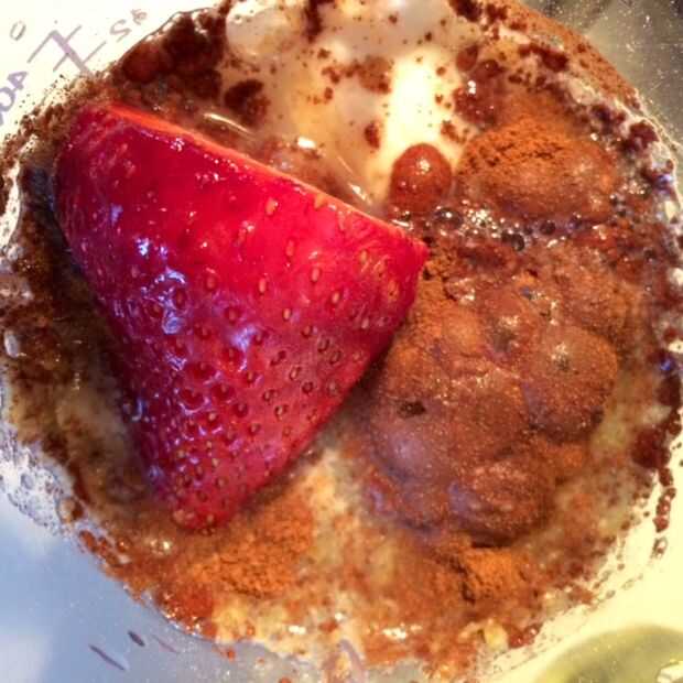 Cupcakes de pudín de chocolate con fresa centros (panquecitos de amor)