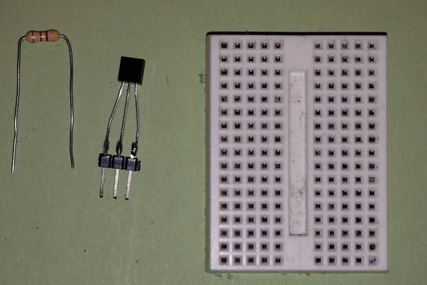 Usé un protoboard mini para conectar el resistor de pull-up a 5 V y conexión de datos. Sólo podría Suelde la resistencia directamente en las piernas.