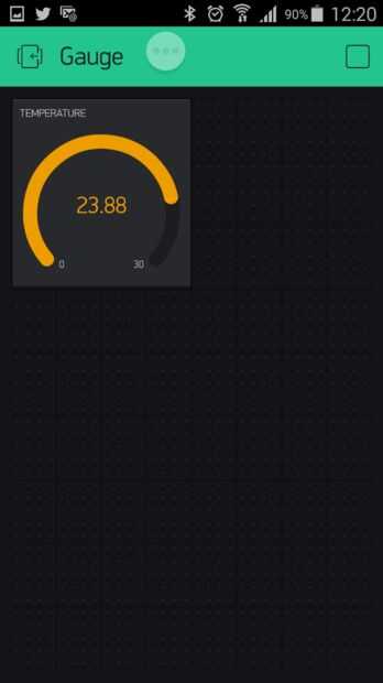 En el dispositivo, tienes que utilizar V5 como entrada y establecer el rango. Instrucciones detalladas relativas al software y iOS y configuración de dispositivos Android están en bosquejo y en la web Blynk. Una vez que usted elaboró los conceptos básicos, es fácil de modificar para que utilice un modo diferente en su dispositivo, como "Valor Display", "Calibre", "LCD" y "Ver".