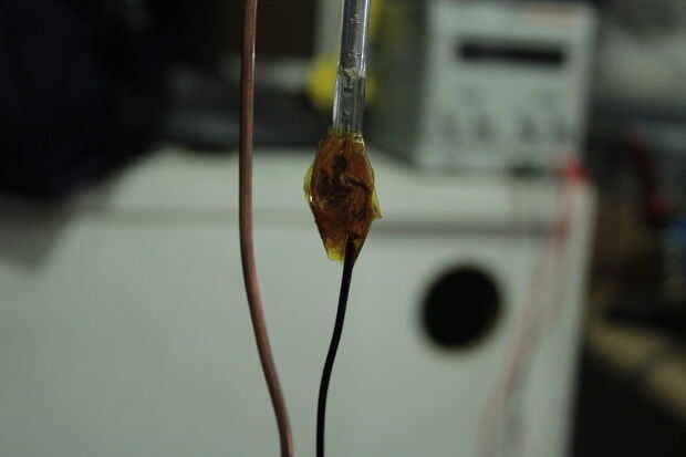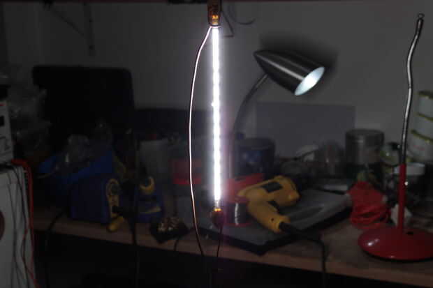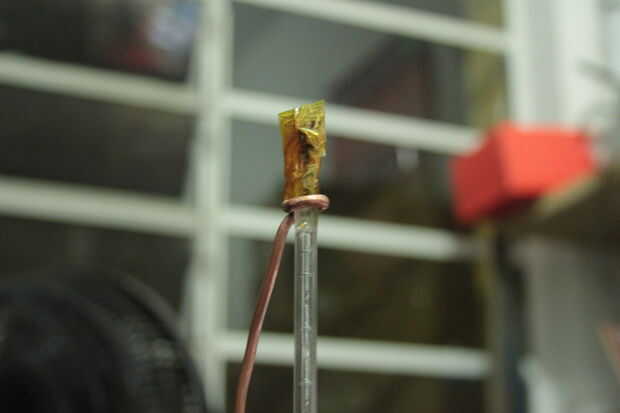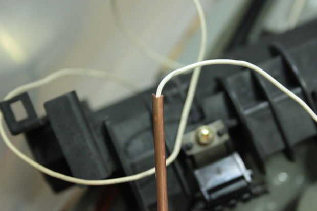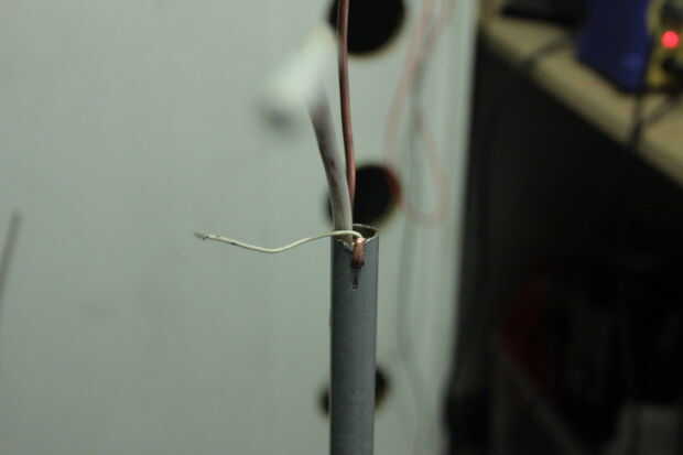 Pasé el cable blanco que cree un hueco alambre de cobre rígido, para ser utilizado como soporte para la bombilla de luz y también para resistir a las altas temperaturas.