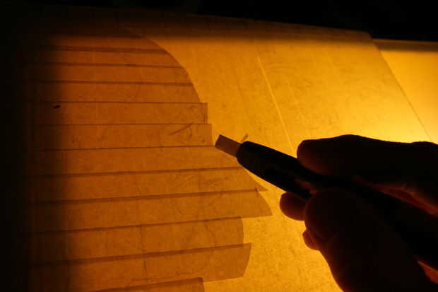 Hacer lo mismo con las siguientes capas y asegúrese de que poner la capa siguiente de cada en otro ángulo para que las líneas dará un lindo efecto de capa extra geométricas. Selecciona las áreas que desea como la misma sombra con cuidado. Tome a su tim con esto y asegúrese de que utilizar un cuchillo afilado. Lo hice con la hoja en la mesa de seguimiento de la luz, así que tuve una buena opinión sobre lo que hice.
