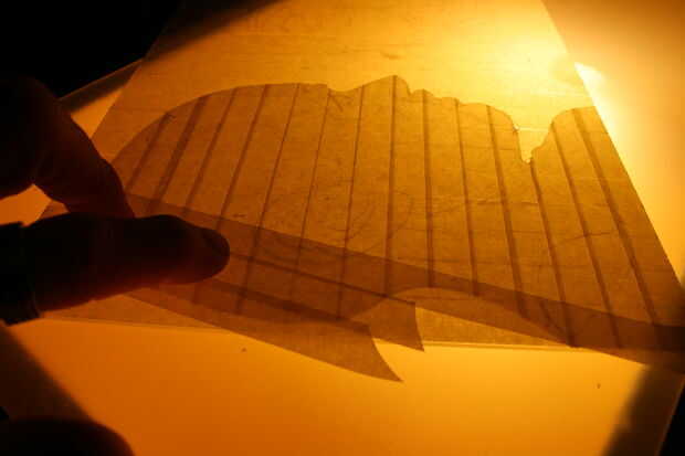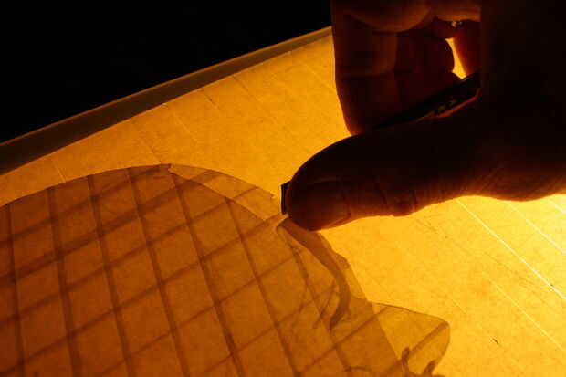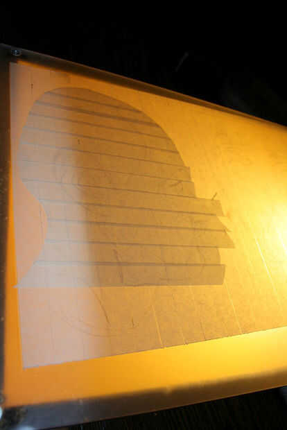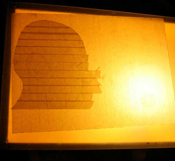 Que rellene en la primera capa, la silueta completa, con cinta en un ángulo de 90 grados de la básica primera capa. Esta será la parte más ligera, aparte de la capa básica de fondo. Cortar el contorno y retire cualquier cinta fuera de la silueta.