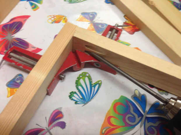 Utilizamos una empalmadora de agujero de bolsillo para construir nuestros Marcos, que hace muy fácil. Todo lo que necesitábamos hacer era establecer la plantilla, fije las piezas, luego perfore los agujeros de bolsada. Una vez hecho esto, nos podríamos atornillar las piezas de la estructura juntos muy simple para crear un marco que es muy robusto y fuerte. Porque teníamos una abrazadera de encuadre lo usamos, pero no es esencial - sólo hace aún más fácil de hacer que todo sea agradable y recta y atornillar firmemente las piezas.