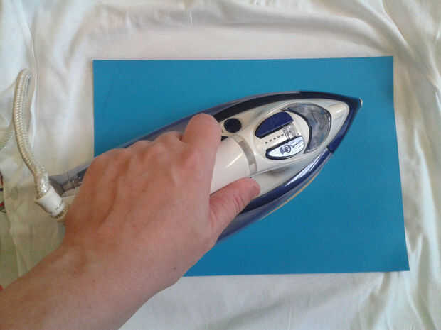 Para ello, cuidadosamente levantar la pantalla y ajustar la tinta según las instrucciones del fabricante. En nuestro caso, esto significaba planchar en el reverso (que protege el resto de la tela y la superficie de la plancha, por supuesto) durante varios minutos.