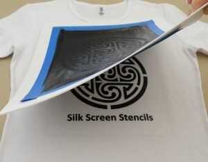 Levante la plantilla de pantalla de seda EZScreenPrint para revelar su diseño. Compruebe algunas esquinas para asegurarse de que la tinta ha atravesado todo el camino. Si hay cualquier vacíos, volver a establecer la plantilla y volver sobre el área.