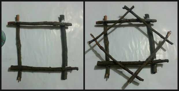 Tomar otro marco y coloque sobre el primer fotograma mediante la rotación a 90 grados con el marco por debajo de ella. Comprobar si se ajusta muy bien y mantener girando para encontrar el ajuste perfecto,