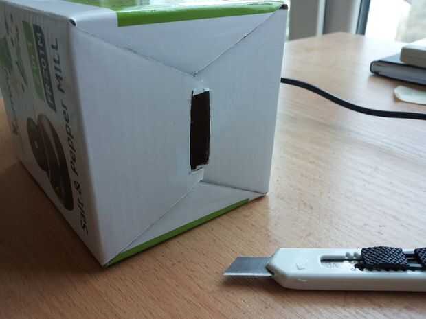 Tenga cuidado de no hacer el agujero demasiado grande como usted no quiere su tono claro de batman a caerse. Quizás se pregunte por qué he hecho un agujero rectangular. No necesita imitar la forma de la toma de luz.
