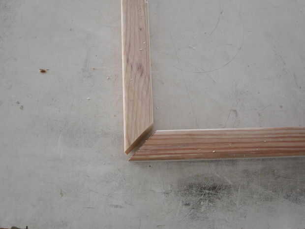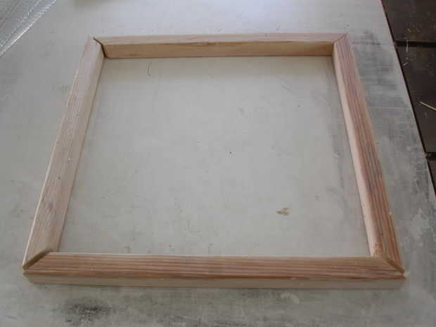 Utilizar la tronzadora o una caja de ingletes para cortar cuatro pedazos de la secoya de longitudes iguales. Hice mi pantalla 22 "x 22" (como no podía ser mucho más grande desde que empezó con un 8' pedazo largo de madera). Hacer los cortes a 45 grados para que todos los cuatro pedazos pueden encajar como un marco de imagen.