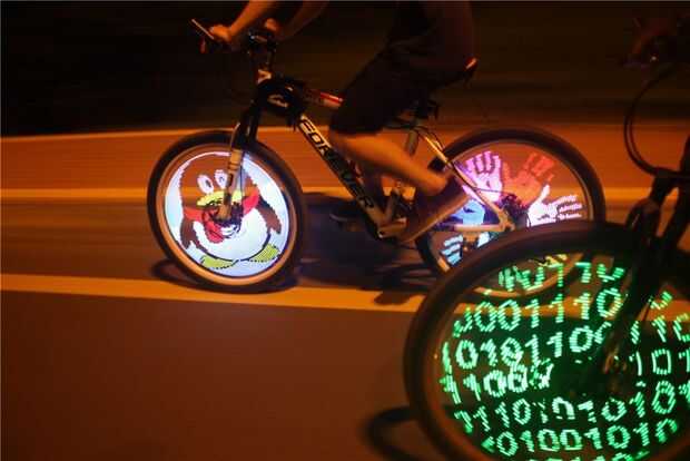 Implantación de esta tecnología se puede hacer en la creación de innovadores anuncios en las ruedas de una bicicleta.