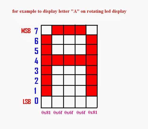 He adjuntado una imagen de la letra A como quieras a través del LED giratorio.