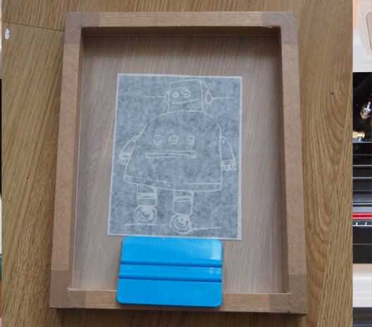 Coloque el lado adhesivo de la etiqueta hacia abajo en la pantalla y frótelo todo con una tarjeta de crédito o escurridor de signo.