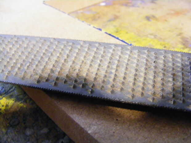 use una escofina y papel de lija para hacer los bordes red bien redonda y lisa, es no un fan de las esquinas y se rasgan fácilmente cuando están estiradas sobre un borde.