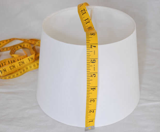 Para empezar, primero tienes que medir es la altura de su pantalla. Cuando añades tu cinta, vas a quiere este alto o más alto por lo que cubre la bombilla y el luminario. Mina fue 7" y creo que mina terminó siendo entre 7.5" y 7,75".