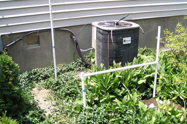 Por supuesto, usted puede poner varillas en cada post pero estoy demasiado barato. También, si (cuando) el AC necesita servicio, el marco entero puede ser levantado. Cuando vuelva a instalar, sólo tendré que alinee 3 bamboleo mensajes en lugar de 6.