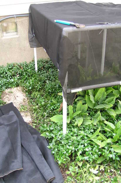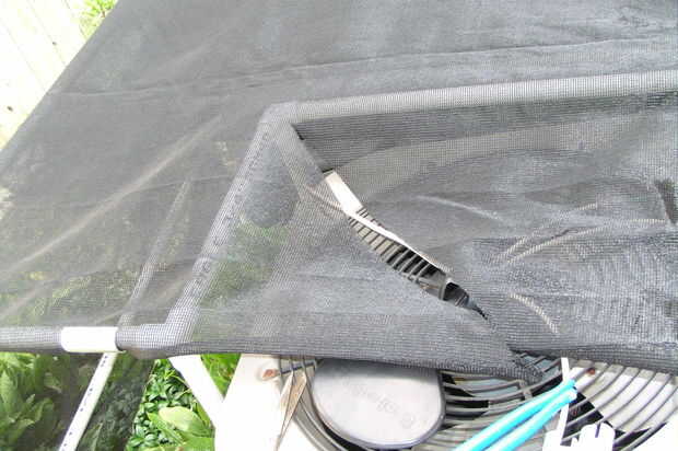 Cortar con un ángulo de 45 grados desde el borde de la tela al Post E instalación como se muestra en la foto.