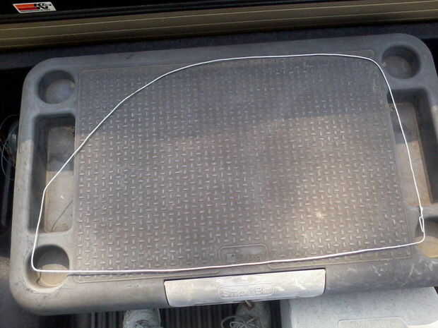 Ahora que tenemos la cantidad correcta de cables para hacer el marco, empezar por doblar el alambre en la forma de la ventana. Cuando haya terminado, habrá una superposición de alambre. Donde se produce la superposición, estará hacer curvas de 180 grados y unir los dos extremos y luego corte el sobrante. Después se corta el exceso, usé cinta eléctrica para envolver la Unión para garantizar que no raye el vehículo.