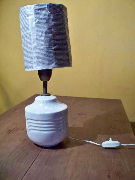 se trata de una lámpara antigua restaurada, fija el circuito eléctrico e hizo esta lámpara pantalla. El marco fue hecho con algunos hilos que encontré, y la pantalla es de dos hojas A4 con texto de periódico pegado en. Me di cuenta que tal vez podría conseguir mejores resultados usando la tela en lugar de las hojas A4, podría darle una oportunidad. bueno, eso es todo, que les espero guste!