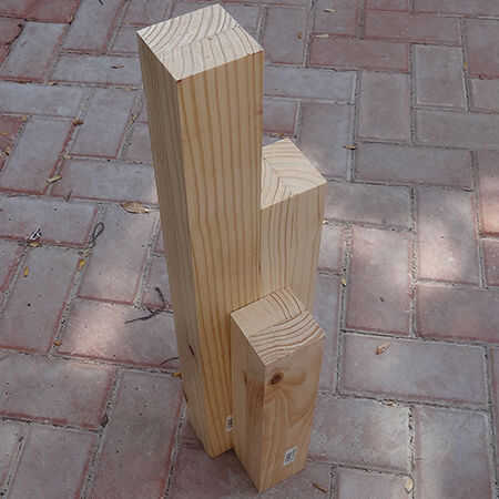 Una longitud de pino de 69 x 69mm fue cortada en trozos de diferentes alturas para que no la pantalla escalonada. Este diseño también es bastante robusto y usted no tendrá que preocuparse de que caiga.