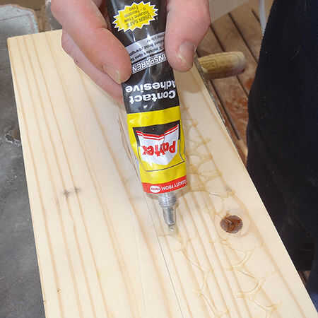 Donde se unen a dos cuadras, Aplique pegamento en ambas superficies a unir. Utilice un trozo de madera o algo similar para extender el pegamento sobre la superficie y dejar durante 5 minutos.