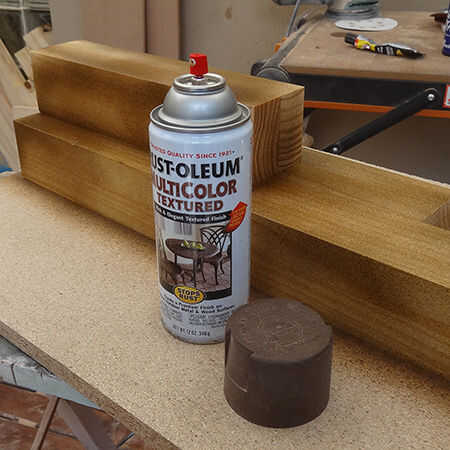 Una vez que se unen todos los bloques se aplican dos o tres capas finas de spray Rust-Oleum de textura MultiColor. Esto le da a la madera un efecto piedra. Permita que cada capa se seque antes de rociadura de la capa siguiente.