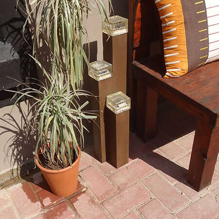 Utilice el pegamento de contacto para asegurar sus luces solares encima de los bloques. No aportan mucha luz, pero proporcionan lo suficiente como para sentarse y respirar el aire de la noche.