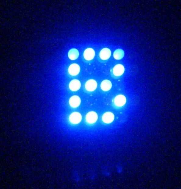 Y la segunda imagen es de una letra B en la oscuridad, estos se difunden LEDs azules con un recién cargadas 4 x AA 2500mAh batería, bastante luminosa. Pero no tan brillante como para que no puede ver la pantalla, perfecto.