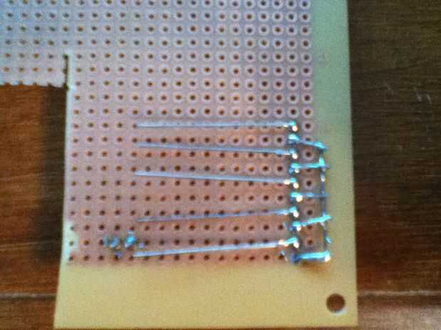 He utilizado LED rectangular 2x5mm porque ajusta a derecho al lado de uno sin un boquete en el perfboard, y que hace la imagen se vea mejor.