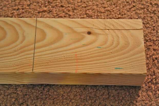 No fijamos lo suficiente en la madera que compré uno de mi 2x4s había partido un poco en el extremo. (Foto 1)