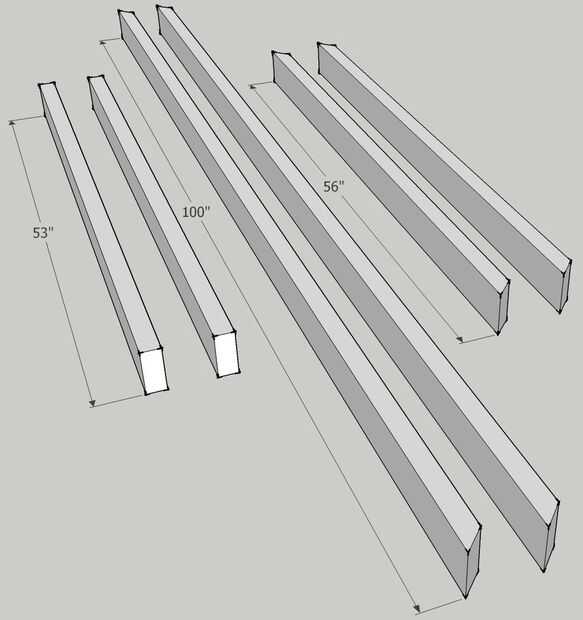 Si usted está construyendo un marco del mismo tamaño que la mía necesita dos piezas que son 56" con los extremos a inglete y dos que son 100" con los extremos a inglete. Usted también necesitará dos 53" las piezas con los extremos cuadrados. (Foto 2)