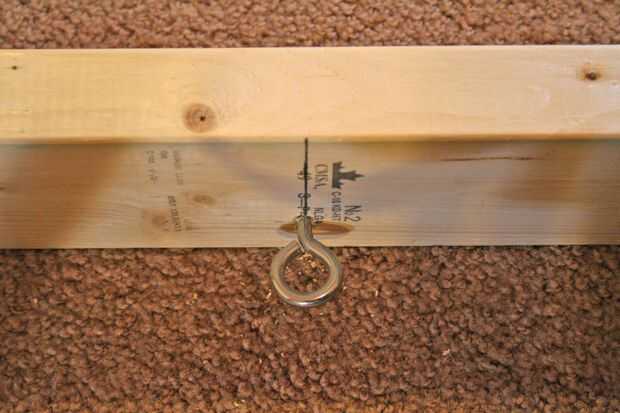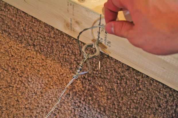 Luego tomar el alambre colgante y sujete a los ganchos de ojo. Asegúrese de que el cable colgante alrededor de sí mismo del lazo 5 o 6 veces (Foto 3).