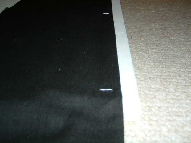 Cortar el material negro en tiras que cubren la zona fronteriza. Cortar mina lo largo 3rds y corte una de las piezas por la mitad, que me dio cuatro pedazos del tamaño adecuado para lo que necesitaba. Hacer tu propia medición. Es mejor tener demasiado que va justo acabar doblado en la parte posterior.
