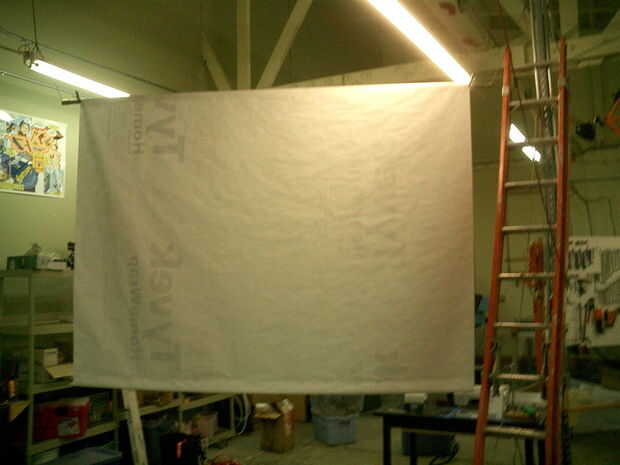 esta es mi entrada para el "fijar lo & mejorar que concurso" en el que yo he mejorado en una simple hoja que colgamos en el techo con algo de peso en la parte inferior de la misma - para una pantalla de proyector hacer una versión mejor sin