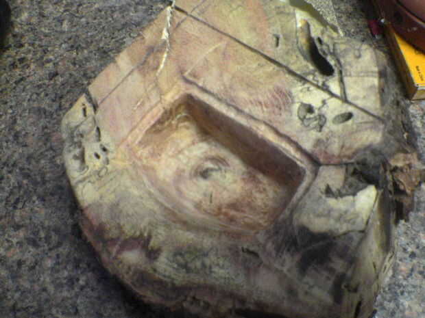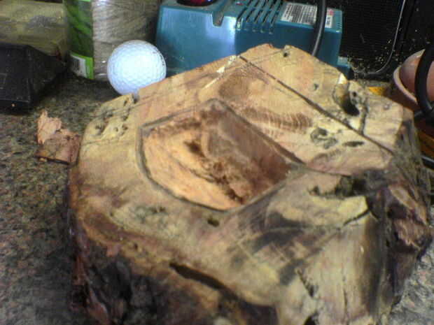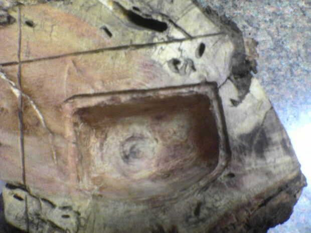 Dejando un borde para una cubierta, perforados hacia fuera lo que parecía ser una cavidad decente, luego se lija con un poco de lija de la dremel.