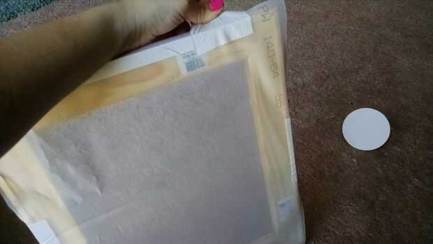 Gire el marco 90 grados y la repetición, pero estiramiento ambos lados. Gire 90 grados otra vez. Estiramiento de la cinta a ambos lados de la pieza media y hacer lo mismo en el lado opuesto. Gire 90 grados otra vez y repita hasta que haya totalmente estirado y pegado todos los lados.