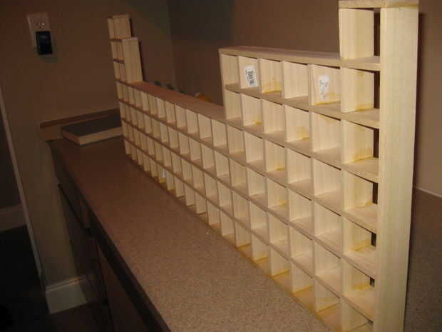 Quería una pantalla que no sea demasiado grande, pero no demasiado bien. Colocó en cerca de tres pies de largo y aproximadamente un pie alto. Utilizan tableros populares recogido en Lowes y Mitre Sierra (definitivamente no es la herramienta ideal para el trabajo, pero trabajé con lo que tenía). Las piezas de madera fueron recortadas insertadas dentro de otra y pegadas. Creo que este proyecto de fin de semana resultó de gran y estoy muy contento con los resultados. Ahora tan sólo para conseguir todos los elementos en el estante apropiado!