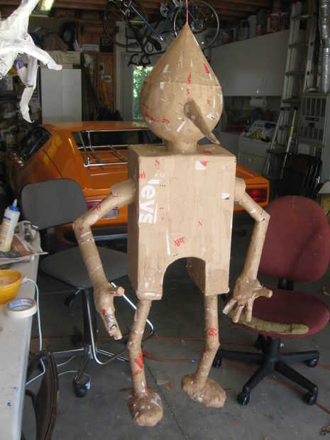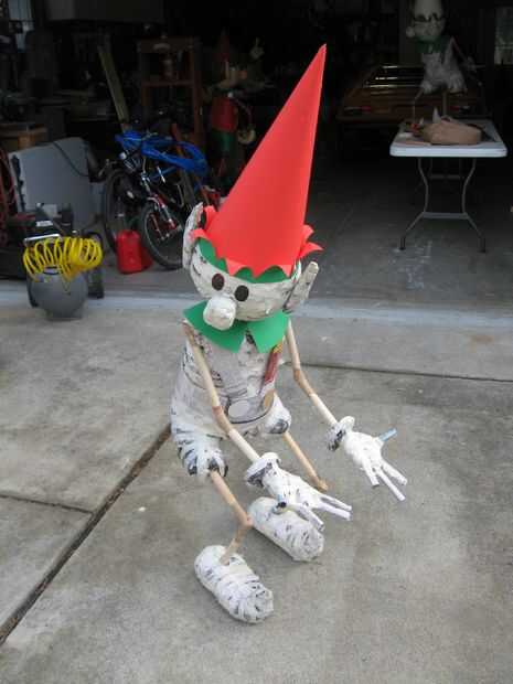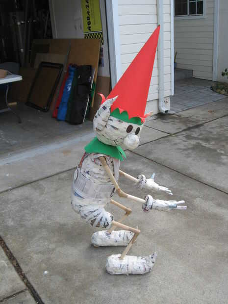 Dejar secar y luego hacer una segunda capa completa de papel maché en el elf.
