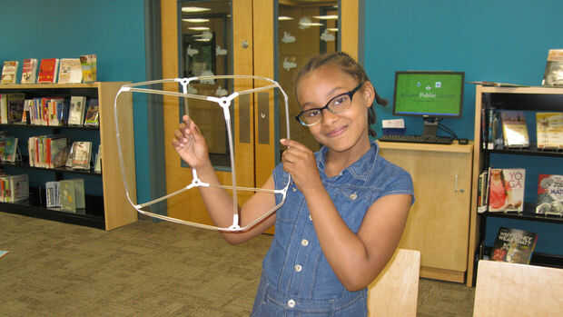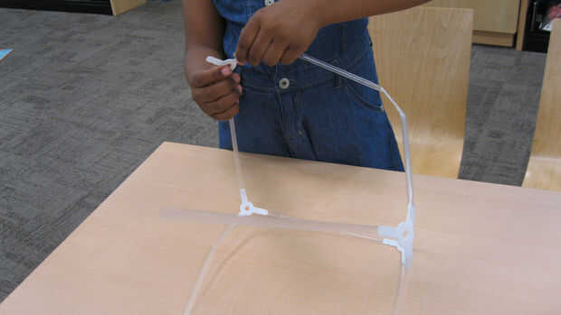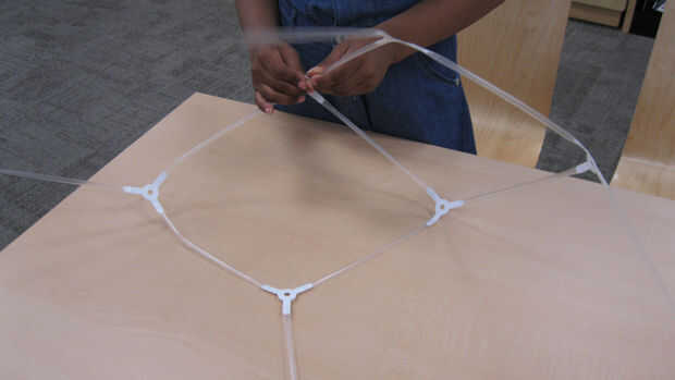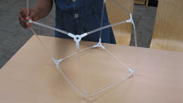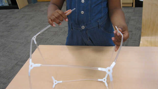 Fije los extremos restantes de la Strawbees a la paja en un patrón que resulta en cada cara del cubo tiene cuatro lados iguales.