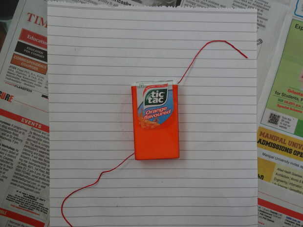 Ahora esto es un truco aseado para recubrir el hilo de pegamento - tomar una caja de vacío tic tac (pero preferiblemente una caja ligeramente más grande con una tapa) y hacer dos agujeros, uno en la parte inferior y otro en la parte superior. Pase el hilo por el agujero inferior al que en la parte superior. Ahora llene la caja con pegamento y coloque la tapa sobre él (que tenga para rellenar el cuadro de un par de veces basándose en el tamaño de su caja). esta forma, al tirar el hilo de rosca de la tapa, viene previamente revestido con el pegamento! ¿bastante limpio, eh?