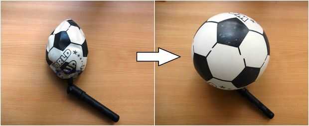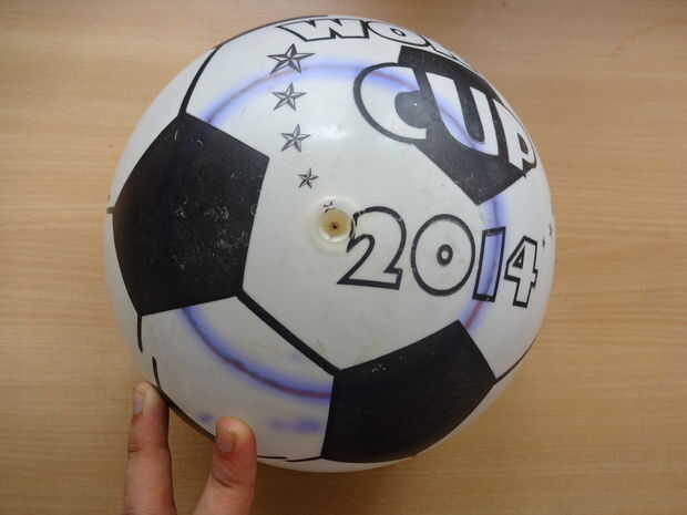 Llenar de aire en la pelota de goma inflable hasta que la bola esté tensada. Con un marcador permanente hace un círculo en la bola (esto es para delimitar un área que no serán cubierto por el hilo - la bola se tomarán a través de este orificio y el sostenedor de bulbo y el bulbo se insertará a través de este agujero).