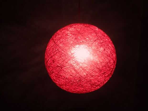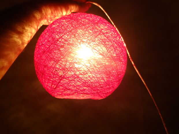 Inserte el cable en el extremo opuesto a través de cualquier orificio pequeño (frente al círculo marcado). Luego conecte el cable al titular de la bombilla y colocar el bulbo y - voilà!-su pantalla super bonito hilo está listo!