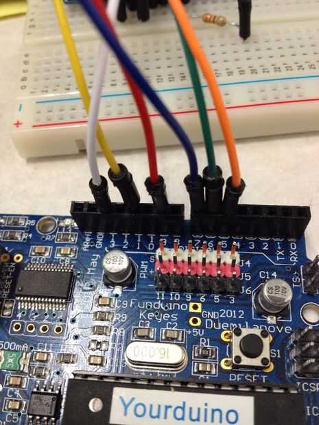 La segunda imagen muestra el esquema de cableado que utiliza. Colores claro no importan, pero puede dejar más claro mientras depura.